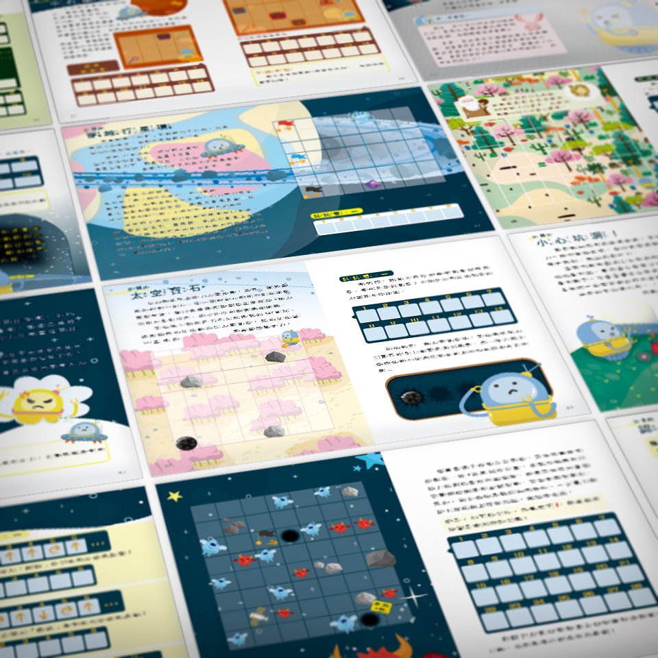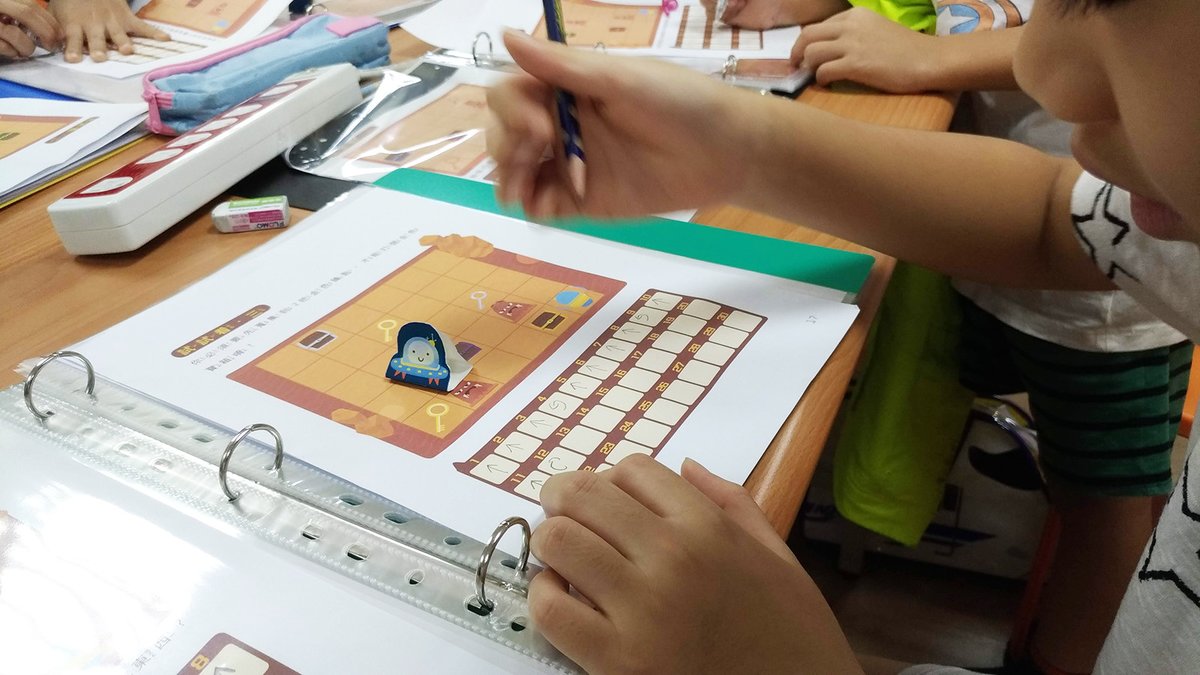 而當孩子在課本上編寫完程式碼,便可以按照程式中的指令,移動放置在地圖上的棋子,甚至依照棋子所在位置及狀態進行不同的行動,以操控主人翁突破一個個的難關,往下一個情節邁進,充分模擬電腦程式中最核心的「流程控管」及「資料操作」的原理。用符號、而非文字來表示程式碼,讓孩子不用記住晦澀的指令及數學原理,也能學到電腦科學的基礎知識,並動手撰寫程式解決問題。